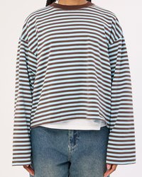 Camisa de manga larga a rayas con cuello de remache para mujer, camisa básica ajustada diaria de peso medio